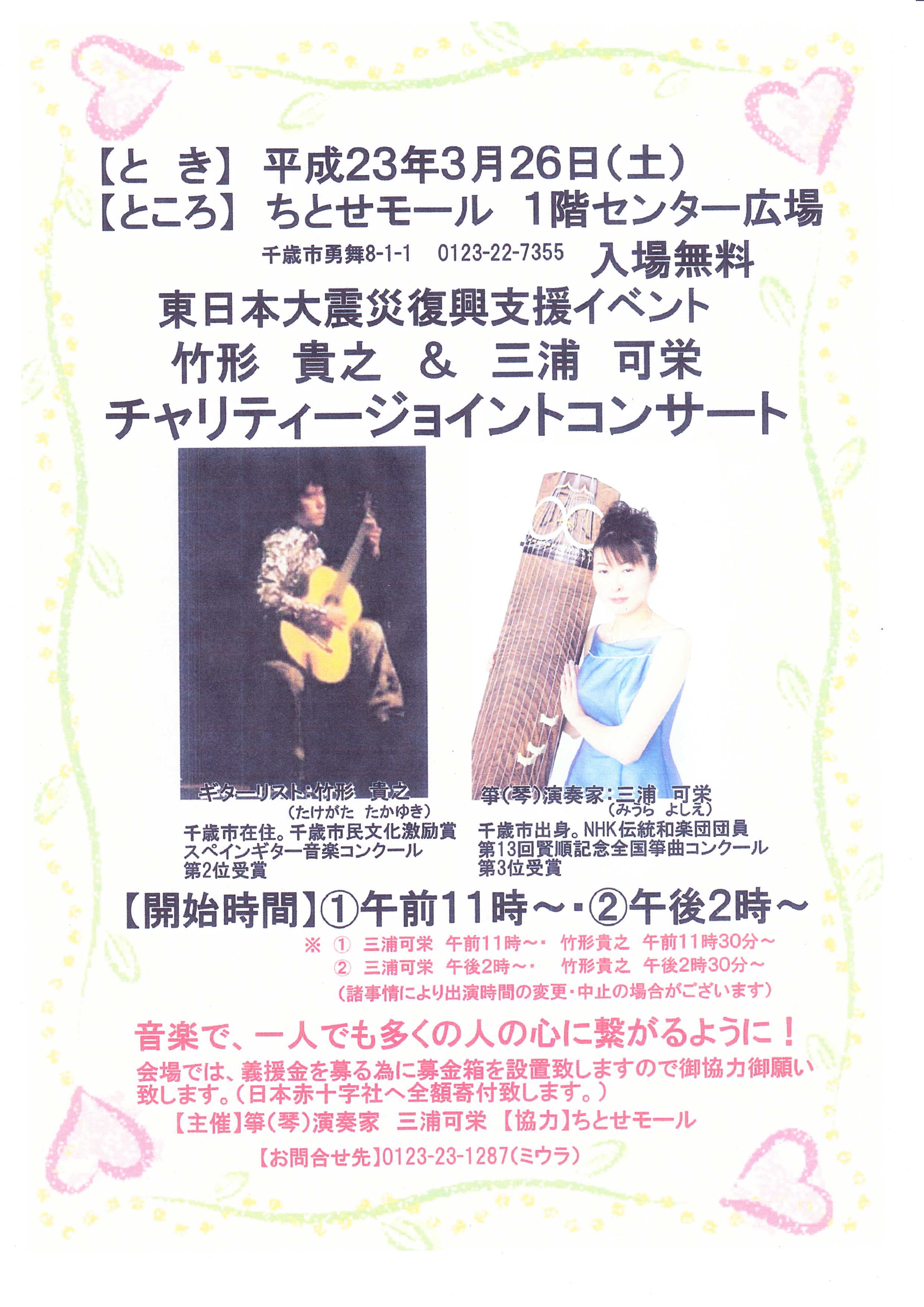 先日はエルム楽器主催のチャリティコンサートがあり、無事終了しました。