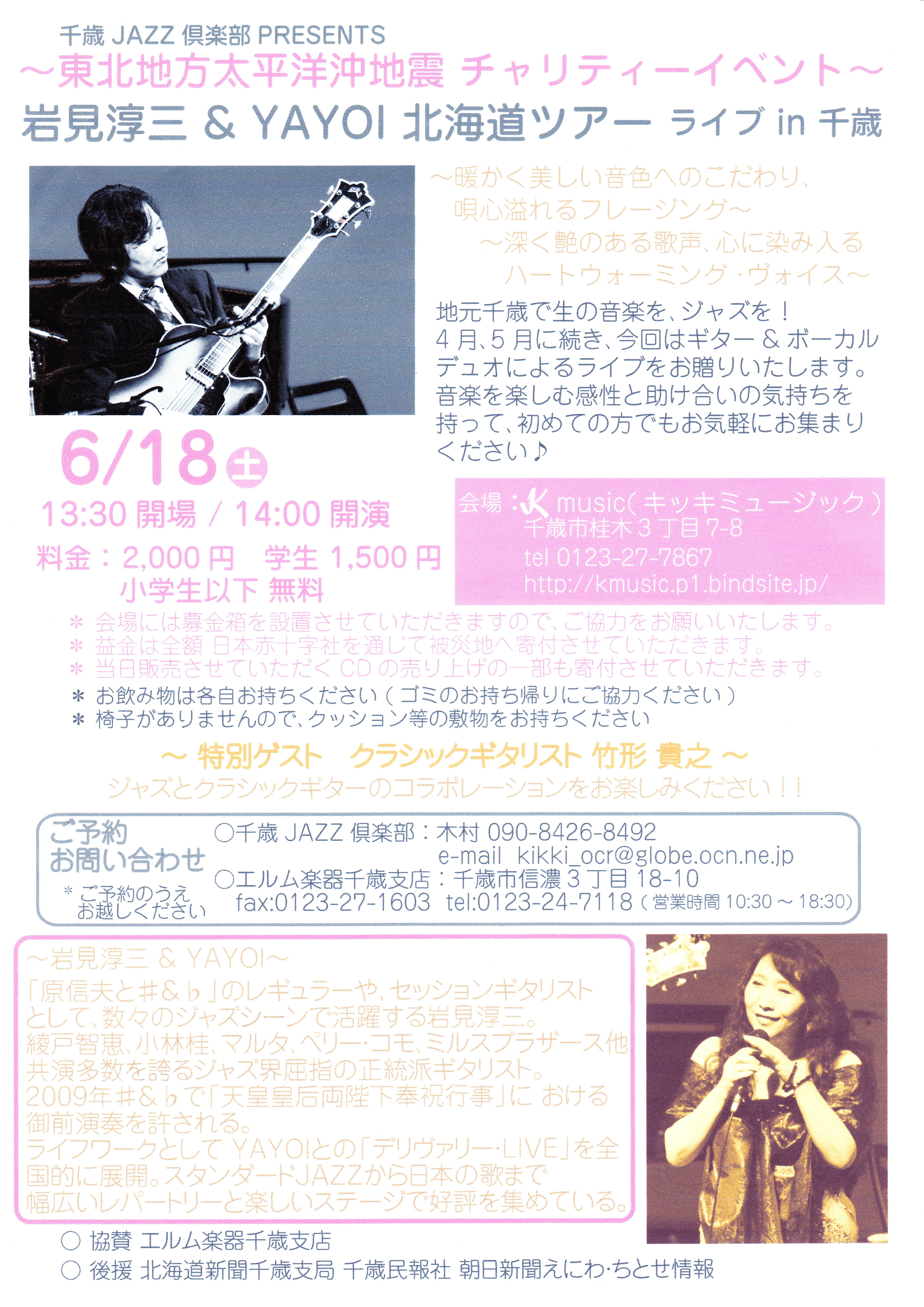 日本でも指折りのギタリスト岩見淳三さんのライブに、数曲ご一緒させていただきます。