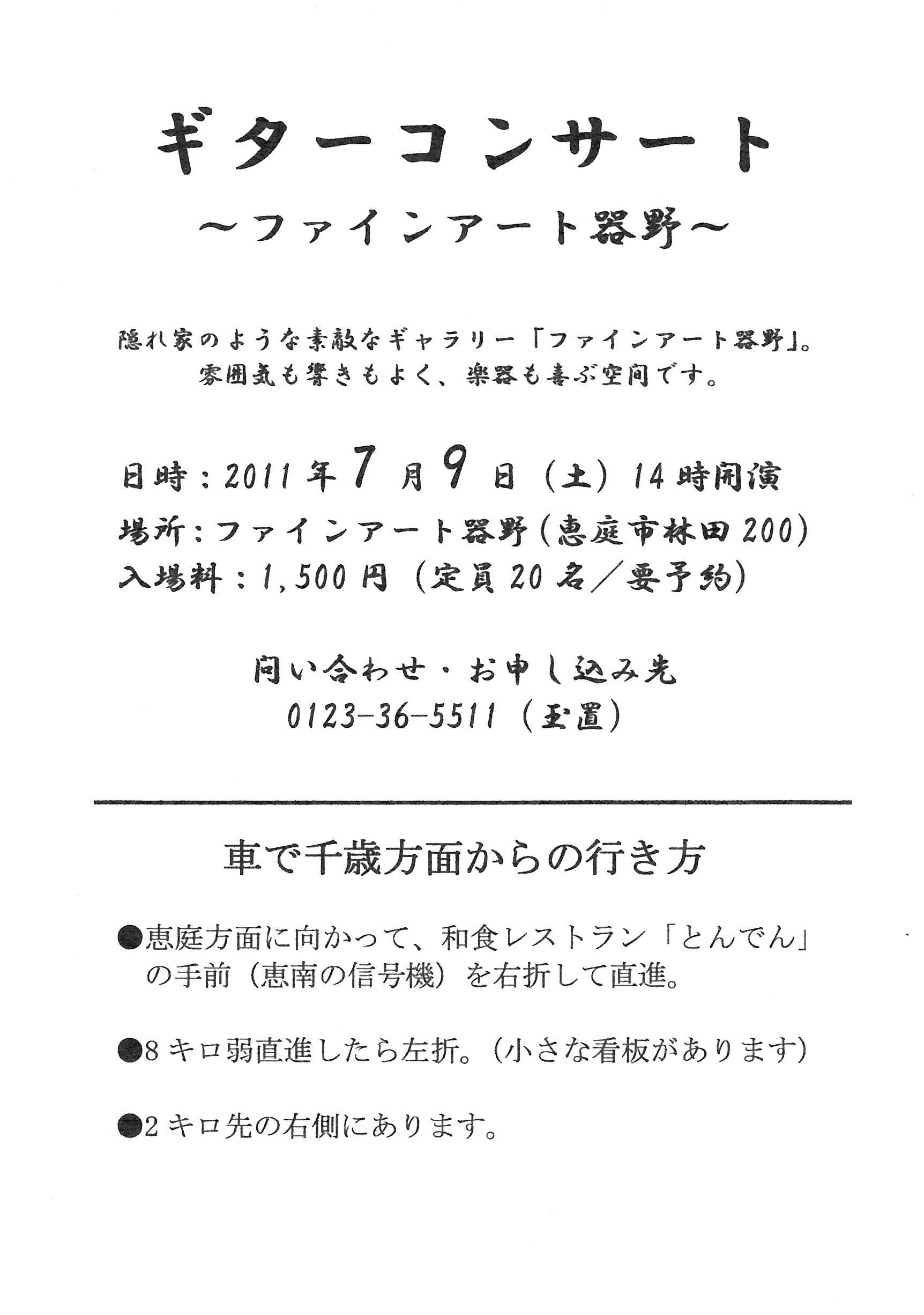 間近で聴く生音コンサート。定員20名程度で要予約。